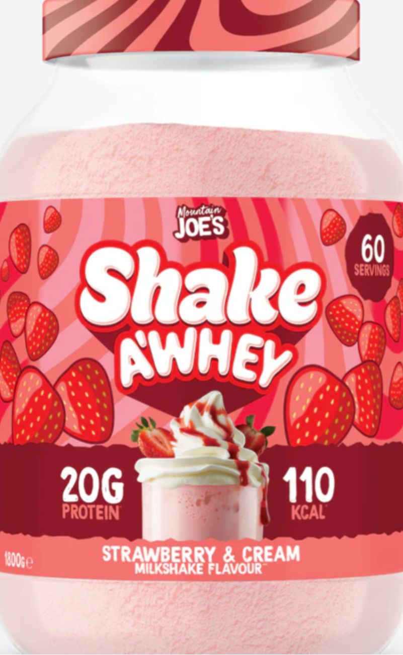 Mountain Joe’s Shake A Whey is a whey protein powder designed to make hitting your daily protein goals straightforward and enjoyable. Each 30g serving delivers 20g of protein in a formula that mixes easily with water or milk and produces a smooth texture that is simple to drink any time of day.