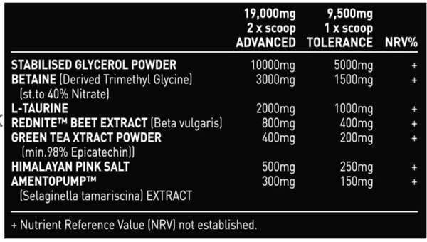 Pumped TF™ combines a blend of ingredients chosen to support blood flow, muscle hydration and fullness, all without stimulants. It includes stabilised glycerol to enhance fluid uptake and spacing between muscle fibres, betaine for endurance support, and botanicals traditionally used in performance formulas.