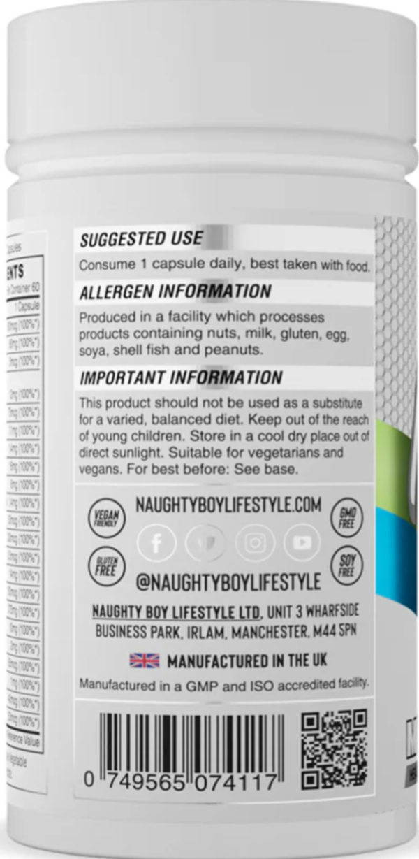 NaughtyBoy® Multi is an essential everyday supplement with 22 vitamins and minerals. Multi has been formulated to cover 100% NRV of all 22 vitamins and minerals. Multi can be stacked with Life Pac to increase your daily vitamin and mineral intake.