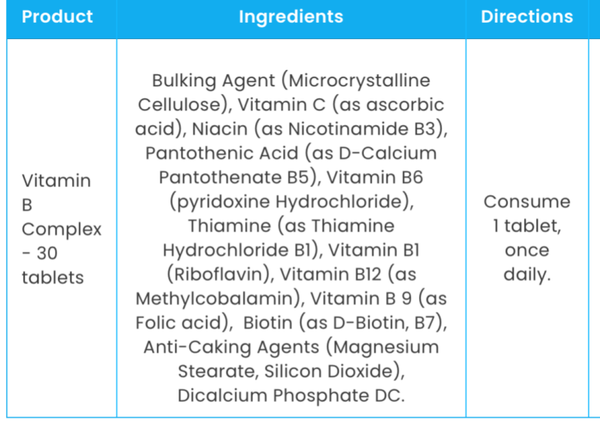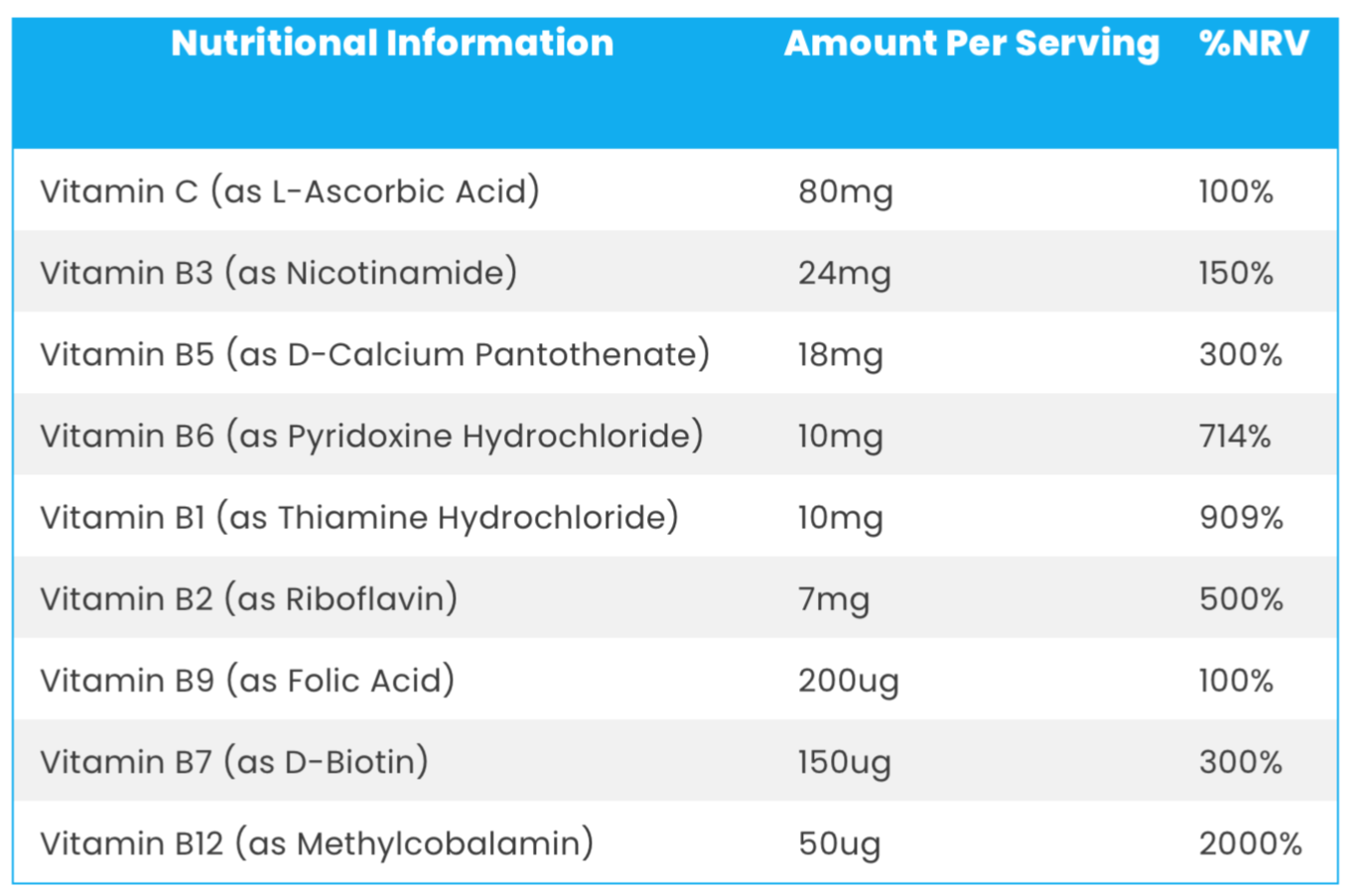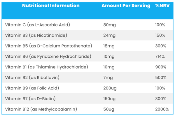 Each one-a-day tablet provides high levels of Vitamins B1, B2, B3, B5, B6, B7, B9, and B12, alongside Vitamin C for added antioxidant and immune support. Together, they help reduce tiredness and fatigue, support the nervous system, and promote mental clarity and focus.