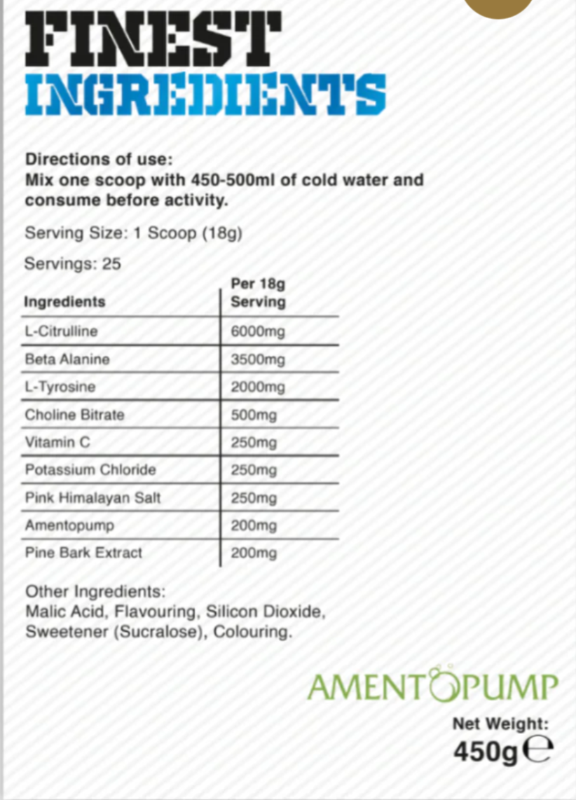 AmentoPump (200mg) – Amplifies muscle contractions and blood flow.